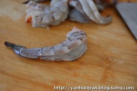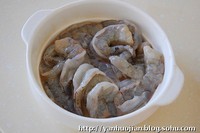 1.大虾洗净去头去壳,背部中间用刀划开,去除虾线