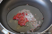 5.锅内油烧至6成热,放入花椒和干辣椒煸炒出香味