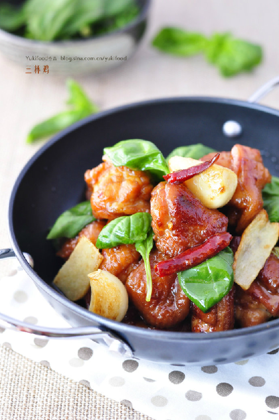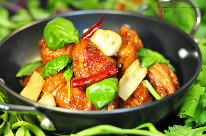 1.在步骤4汆鸡肉的环节中,用时无需太长,3、4分钟就好了,只要看到鸡肉变色即可。这样经过后面的烹制,三杯鸡的肉质就会保持住原有的鲜嫩口感。