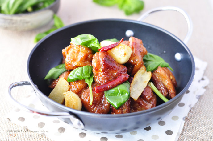 因为在烹制的时候加水很少,调味后盖上锅盖焖熟,所以这道菜从口感上讲是最完美的,肉质极其鲜嫩、多汁,成了众多传统名菜中的赢家。除了口感上的惊讶,这道菜在色泽上更是让人觉得惊艳,鸡肉的颜色酱红油亮,九层塔(罗勒)翠色欲滴,搭配在一起给大家呈现出一份令人垂涎的美感。