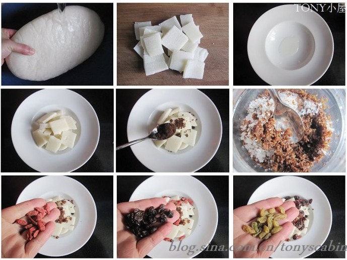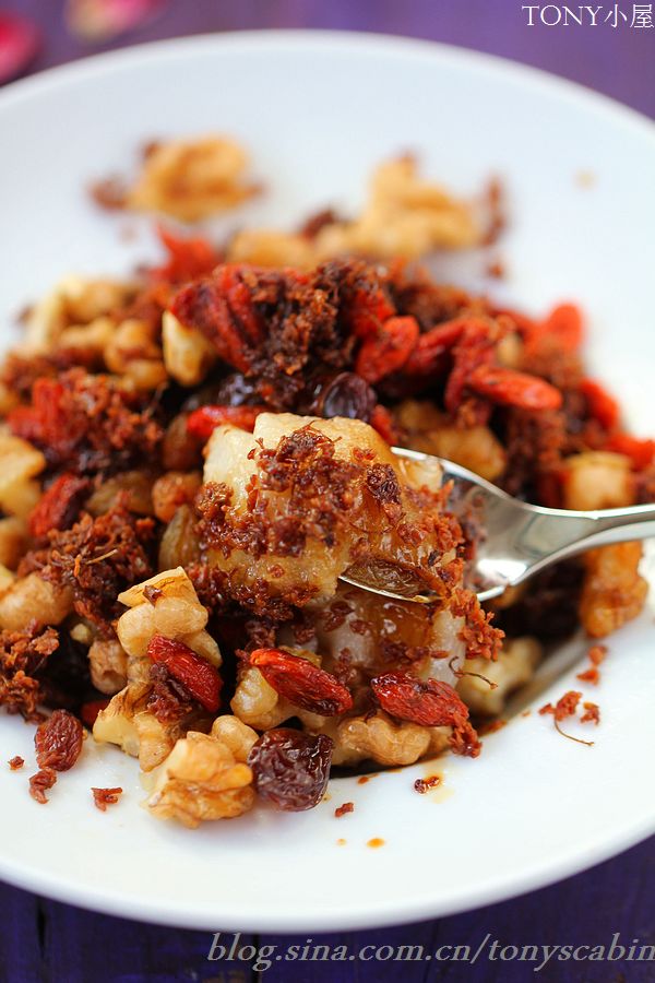配料:红糖 糖桂花 枸杞 葡萄干 核桃 食用油