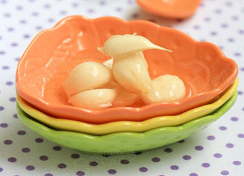 1、选择新上市的嫩蒜去掉外皮在水中泡一天以上。其间分几次换水。水要选择烧开后放凉的水。这样可以有效去除蒜的辣味;