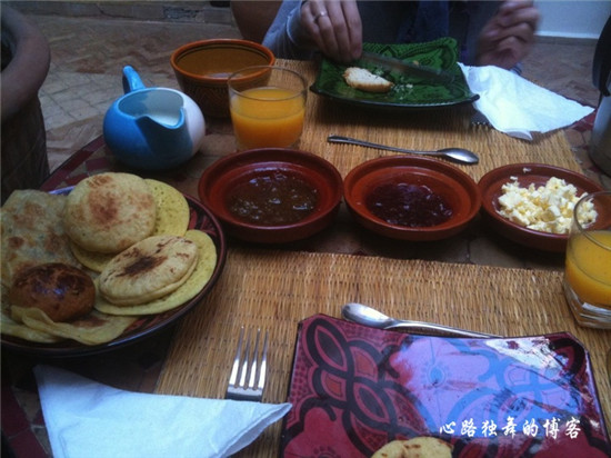 12、摩洛哥:涂有果酱、奶油或奶酪的面包。(每次都很好奇那面包的样子,觉得不像印象中的唉)