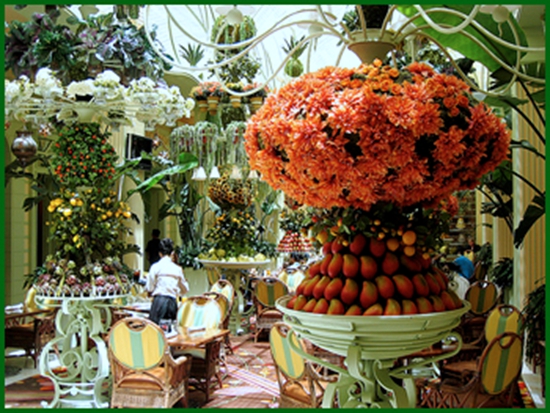 这家餐厅是《今日美国》票选出动“最佳自助餐”。Wynn的自助餐厅为顾客提供奢华的自助餐享受,这种享受不仅仅体现他们提供精美的餐具上,同时也包括他们高品质、新鲜的食物。用餐区域舒适有序、十分惬意,这里完全被高耸的花丛与植物装点,使这个空间变得高雅、有如仙境一般。永利酒店的自助餐是非常适合素食者的,他们有着多种多样的素食。因为这家餐厅的食物有着非常好的口碑,因此午餐时间与晚餐时间都会有很多人排队。这里的沙拉杯与螃蟹腿都非常受欢迎,但是总有一些菜品会在自助时变得不那么尽如人意,寿司就是其中之一;永利酒店的寿司就没有像它其他的菜品一样赢得极高的赞誉。