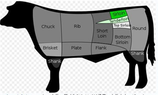 这两个部分在美国英国等地叫法不同,或者翻译成沙朗牛排或者西冷牛排。
