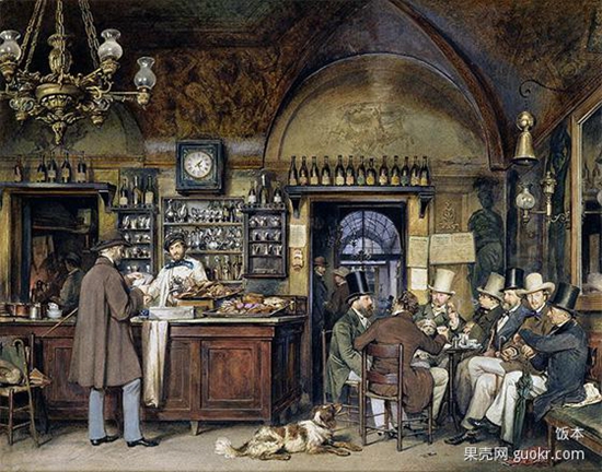 意大利人的一天可能是从 bar 里开始的。这里的 bar 不同于我们通常认为的酒吧,它更类似于咖啡馆。所以当有意大利朋友早上说去 bar 的时候千万不要惊讶,他可能只是去买早饭而已。图为奥地利画家 Ludwig Passini 笔下罗马最古老的咖啡馆 Cafe Greco。