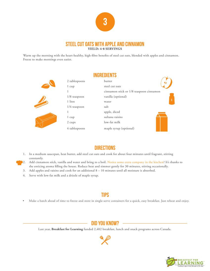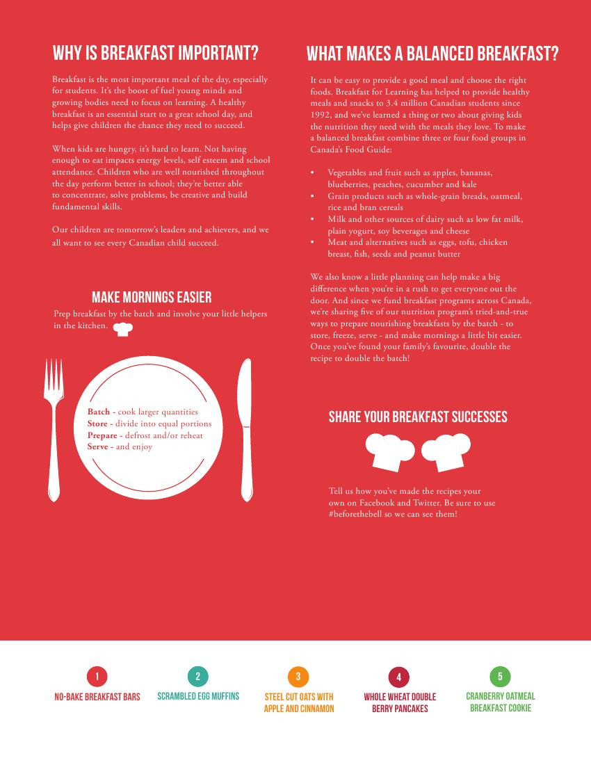 为了协助家长在繁忙的早上,更容易准备营养丰富的早餐,该组织日前在网上推出5个简单易做又健康的早餐食谱,公众只需上网:www.breakfastforlearning.ca点击“Before the Bell”,便可进行下载。