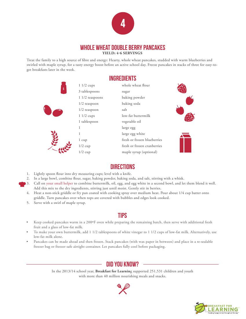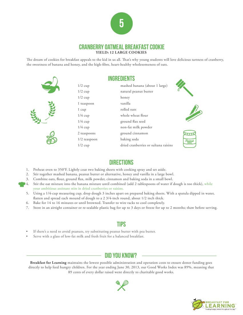 Breakfast for Learning通讯及发展部总监Kelly Berlinic表示,该份食谱是由营养师批核并经儿童“测试”,除了营养充足及健康,也很适合小朋友口味,相信可以为繁忙的家庭提供一点帮助,从早餐开始展开健康的一天。