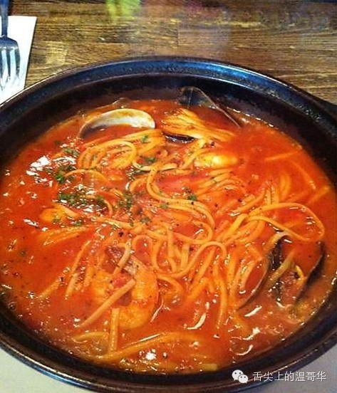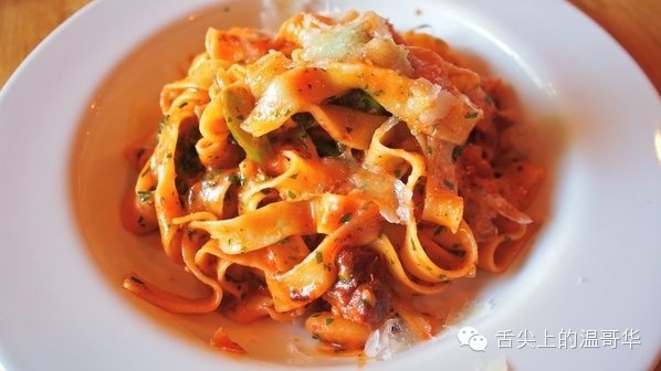 20多年来每到饭点时,门前总是排着一只喜洋洋的队伍,每个人脸上带着对pasta的无限向往。吃完后出来的顾客们很满意的表情,几乎人手拿着一大盒没吃完的pasta,留作第二天的上学或上班午餐。是不是很有喜剧效果?Burnaby 最受欢迎的意面酒吧。份量大是它的最大特色。很少有人能吃完,据说能吃完的话有奖品。