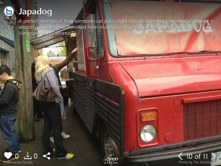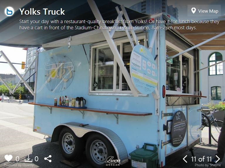 【温哥华乐活网编译】温哥华的快餐车迅速发展于2010年市议会允许本市有更多流动食物的时候。现在大温地区有超过100种不同的食品车,卡车以及供应商。
