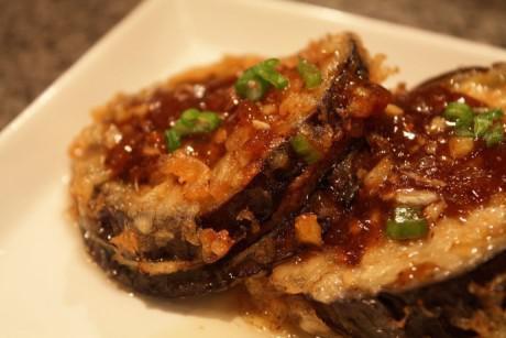 2、热锅油热后放入茄子,小火慢煎至茄子微软后盛出;