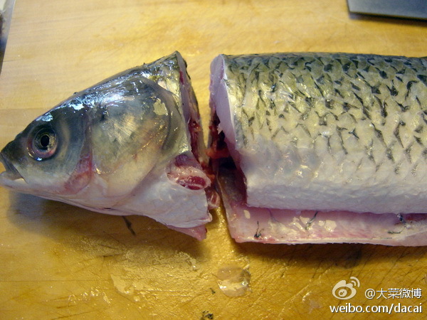 1,先处理鱼。将杀好的鱼洗净,剁去鱼鳍,切下鱼头。