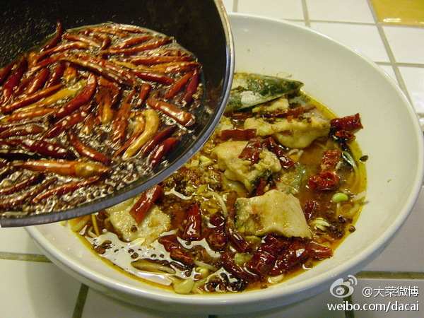 如同所有入乡随俗的菜肴,北漂的水煮鱼吸收了北方制作辣椒油的方法。当成功地和当地烹饪方法结合,适应了北京人的口味之后,水煮鱼日渐被人喜爱,终于红透京城,并以不可遏止的速度向全国全世界蔓延,如同明星效应,水煮鱼迅速成为一种符号,扎根在每一个可能的地方,以至于我们在内蒙小镇寻找当地美食,对方却告诉我们他们的特色是:“水煮鱼。”