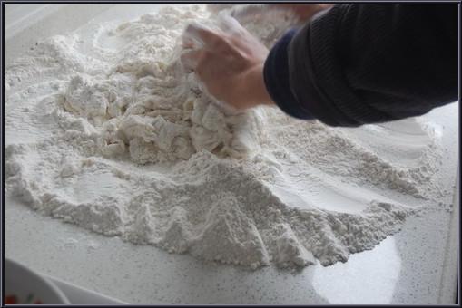5.用该“泥汤”和面,至手感舒服。