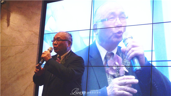 省议员李灿明先生致辞,右为半岛控股集团王文康先生