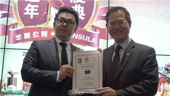 半岛控股集团王文康先生(左)、亚太贸易投资中心总领殷秋红女士(中)及半岛公馆总经理王滨