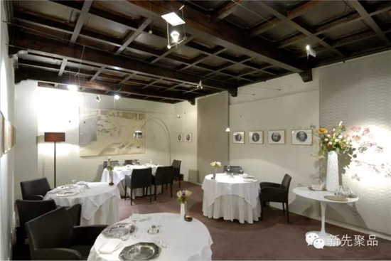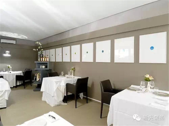 Osteria Francescana现为米其林三星餐厅,餐厅布置没有金碧辉煌的装饰,而是十分简洁、充满艺术氛围的装饰。深褐色是餐厅的主色调,白色的桌布搭配银色的餐具,餐厅墙壁上挂着摩登花画像,艺术气息非常浓厚。