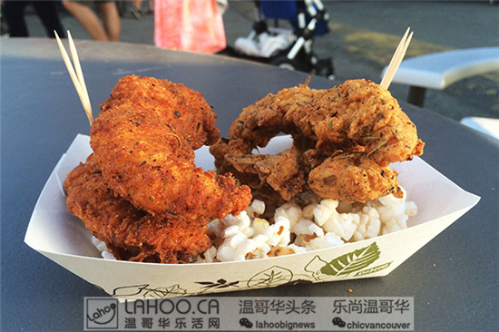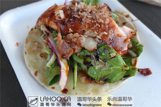 Phat Buddha Tacos同样也是今年的新摊位,他们的菜单上有各种亚洲风味的玉米饼,推荐“Van-City’s Taco”,有三文鱼、菠菜、羽衣甘蓝、熏肉、和柴鱼片,让你在夏夜耳目一新。