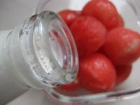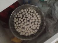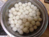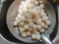5.捞出来用冷水冲去表面的淀粉,把小丸子放在凉开水里泡凉