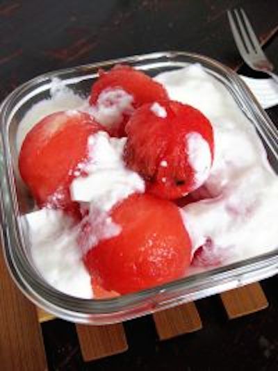 4.大约到了半瓶酸奶,放到冰箱冷藏以下时候即可开吃