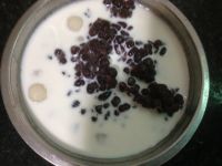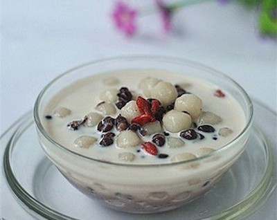食材: 小丸子:200g 枸杞:适量 蜜豆:适量 牛奶:适量