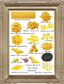 在我追问了意大利的朋友之后,总结出了以下几种比较常见的意大利面,并且在后面都为大家注好了音。意大利餐厅的菜单上,在pasta一项下面会经常出现不同种类意面的名称,所以记住图表里这些对点餐绝对是会有很大帮助的。