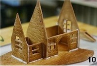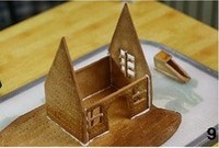 4、拼装屋子的时候要有点儿耐心。特别是屋顶,必须等糖霜干透了再松手,以防止屋顶没有粘牢掉下来。