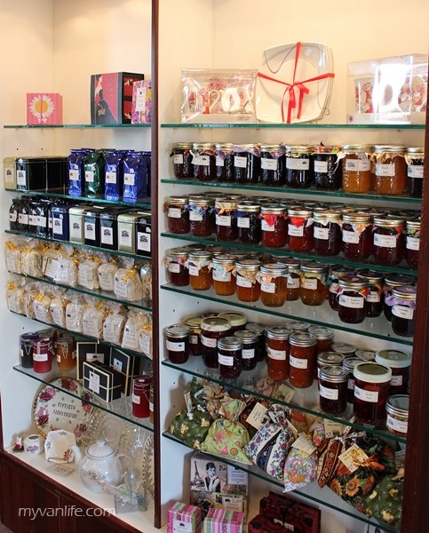 有闲情者,去附设的礼品店绕绕吧!小小的空间贩售著英国风味小物:桌巾、明信片、纪念品;农场手工果酱、茶叶更是少不了。较有趣的是,一座古老的铸铁烤炉被挪用来当陈列架,大大小小老锅具和食物道具摆满炉上。