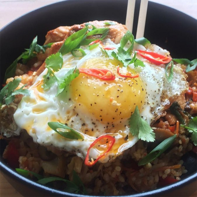 Sai Woo的招牌炒饭(Fried Rice Bowl)不仅在晚饭可以吃到,周日的早午餐菜单中也有哦!别看这碗炒饭中只有简单的米饭、煎蛋和菜叶,它可是超级美味的哦!尝一口,就停不下来!