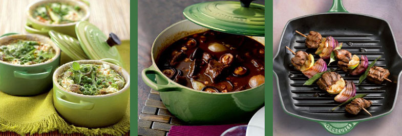 酷彩的铸铁锅煎炒烹炸样样都有,但平时最常用的也就这么几种:法国烤锅French Oven,炖锅Braiser,煎锅Skillet,深烧锅Saucepan,烤盘Roaster,再加上一堆奇奇怪怪的专用厨具(比如奶酪火锅、可丽饼铛、塔吉锅等等)。