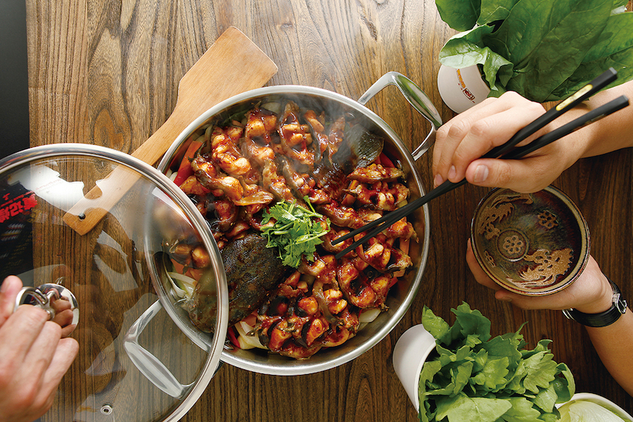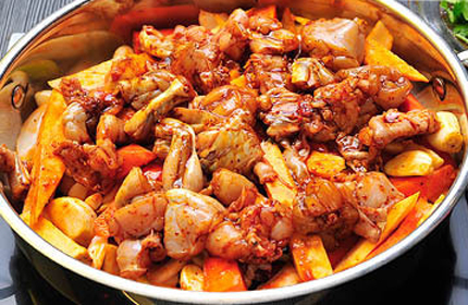 原料的选择与原料之间的搭配均经过科学考究、计算,充分达到营养均衡、鲜香绵嫩的完美效果,并备有酱汁系列、海鲜汁系列、酸椒汁系列、麻辣汁系列四大系列、数十种口味。食客在食用焖锅的同时,还可以加入特制鲜汤涮吃多种肉类及蔬菜。