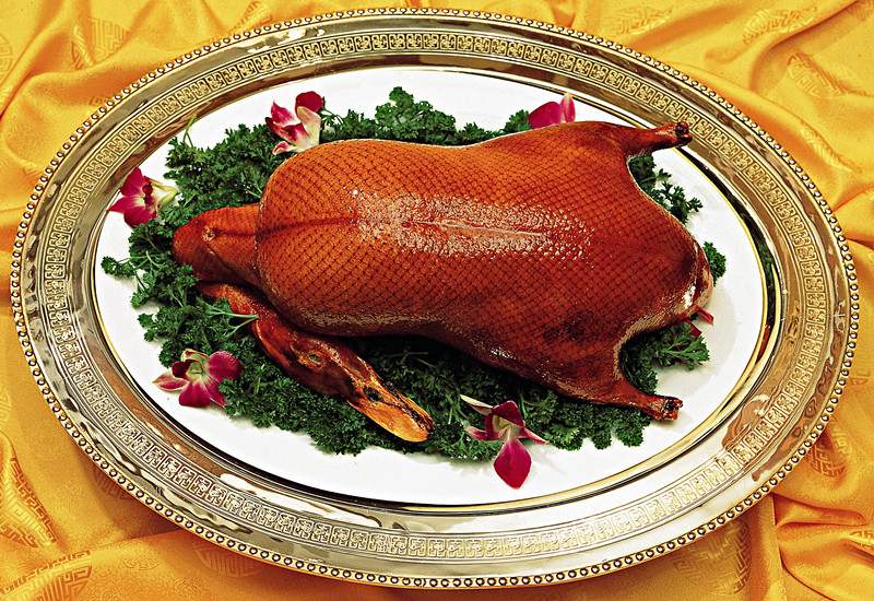 烤鸭是全聚德的主要经营品种,从选鸭、填喂、宰杀,到烧烤,都是一丝不苟的。除此之外,以全鸭席、特色菜、创新菜、名人宴为代表的系列精品菜肴形成了全聚德海纳百川的菜品文化。