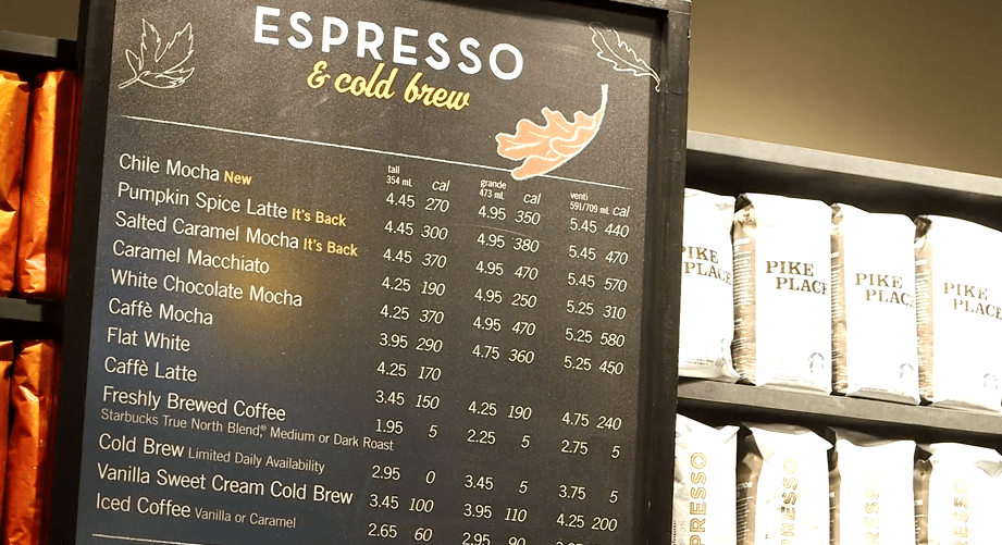 现在!星巴克将帮助你做出更健康的选择!加拿大星巴克将在9月29日起在店面菜单上标注卡路里。