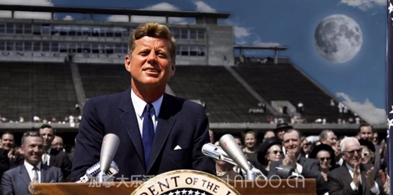 1961年,苏联实现了第一次载人航天飞行,当时许多美国人认为他们在技术竞争中输给了苏联。美国也决心要完成首次载人任务,1962年肯尼迪作了一次着名演讲,宣布美国将选择登月!