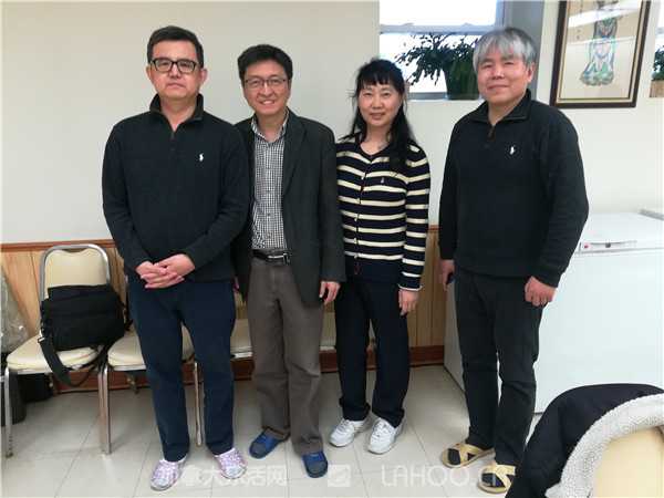 新华社渥太华分社首席记者李保东、《 人民日报》驻加拿大首席记者吴云、《健康时报》社长张志刚与贾葆蘅合影