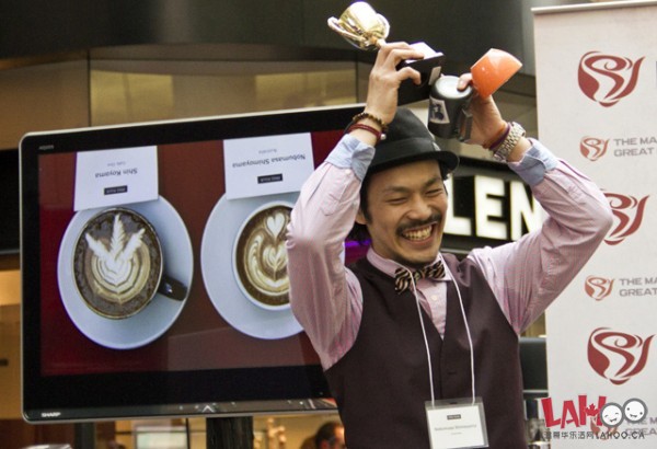 2012年度拿铁咖啡拉花大赛于昨日(20号), 再度回到市中心图书馆举办。 今年活动依旧以多元化的风格登场, 除比赛外还设有免费咖啡试喝, 儿童游戏区及茶道讲座等。自由拉花项目第一名奖金高达3200元, 在场并吸引了大批民众观战。