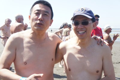 北京 移民王先生与台湾移民陈先生,已连续两年结伴参加,并称将来若时间允许,还是会继续参加。王先生称,第一次踏上这个海滩是因为好奇,决定要脱掉衣服参与跑步还是觉得十分害羞。不过,“真正脱光衣服,开始享受自然后,当时的感觉只能形容为特别爽,十分放松。刚开始可能会觉得艰难,一旦脱过第一次后,再度参加裸跑就十分自然了,因为人原本就是光脱脱来到这个世上的。”