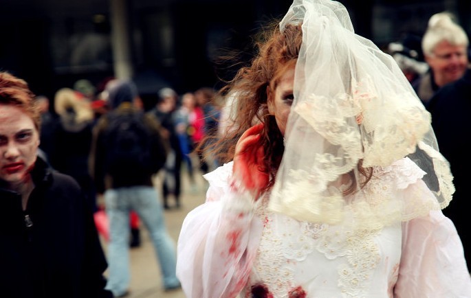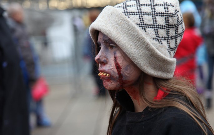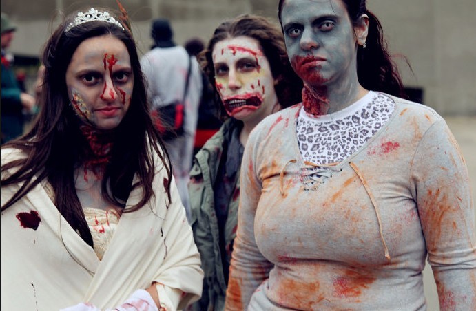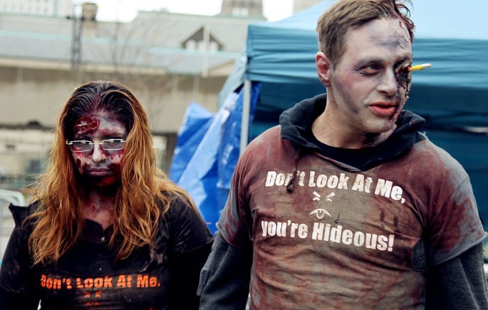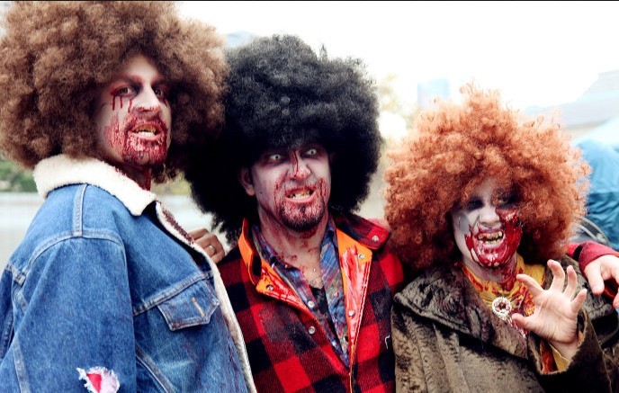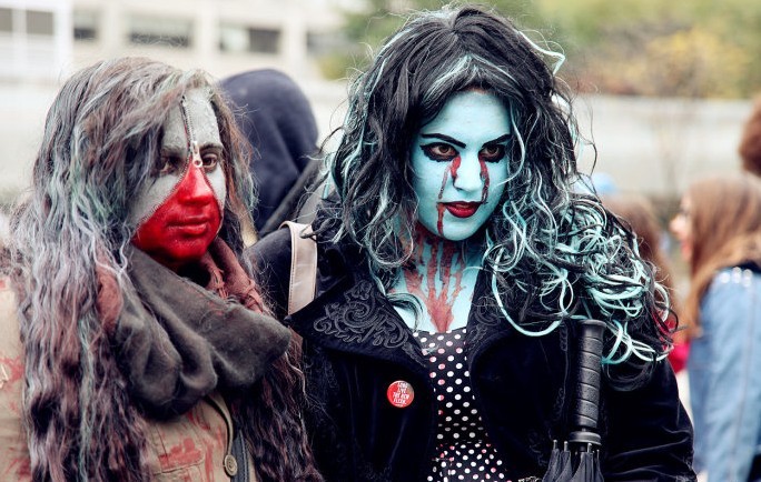 当然也有市中心各种化妆学校的学生们参与到这项活动中来,如果你看到一些化妆专业,堪比好莱坞电影的僵尸,那八成是他们。这个一年一度的僵尸大游行来啦,多伦多这次预计有超过6000多人参与。