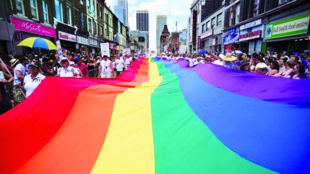 世界同性恋自豪节的升旗典礼已于本周五晚在多伦多市议会门前的弥敦菲腊广场举行,从而为为期10天的嘉年华会正式揭开了序幕。