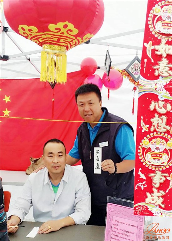 集市里面还有一个由Burnaby neighborhood house组织的国际村,不同的国家在此展现各自的文化和传统,体现了多元文化的特色。中国的摊位里面,书法家为每个参观的市民书写了中文姓名,饶有趣味。