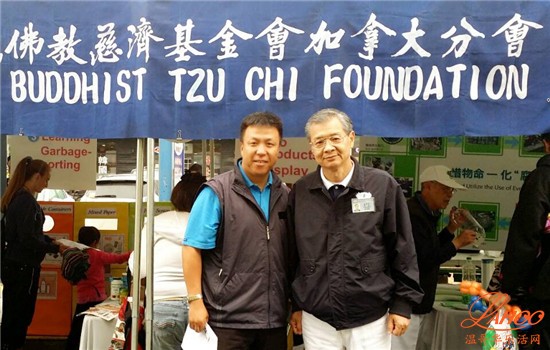 时断时续的小雨并没有阻止成百上千的民众参加这个年度社区活动。众多的组织和机构在临时搭建的帐篷宣传自己的服务和理念,这其中包括本拿比教育局和慈济加拿大分会的摊位,颇具特色。