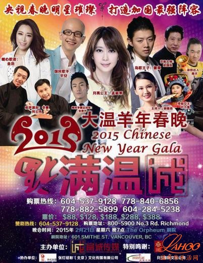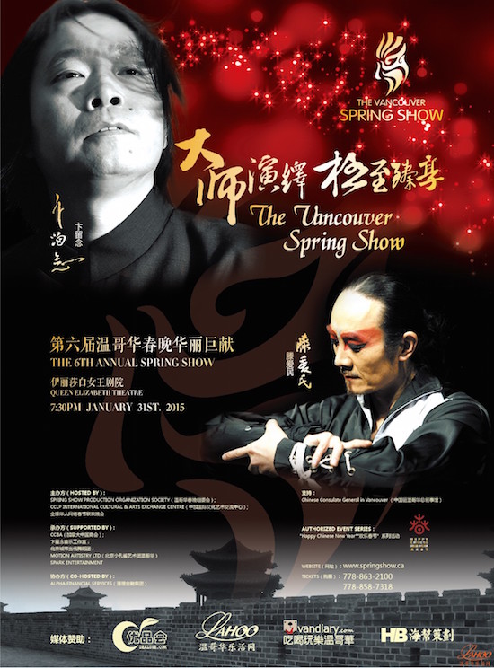 第六届温哥华The Vancouver Spring Show(温哥华春节晚会)将于2015年1月31日在伊丽莎白女王剧院(Queen Elizabeth Theatre)举办。晚会由中加国际文化艺术交流中心和温哥华The Vancouver Spring Show(温哥华春节晚会)剧组主办,演出主旨是体现加拿大丰富的多元文化特色。