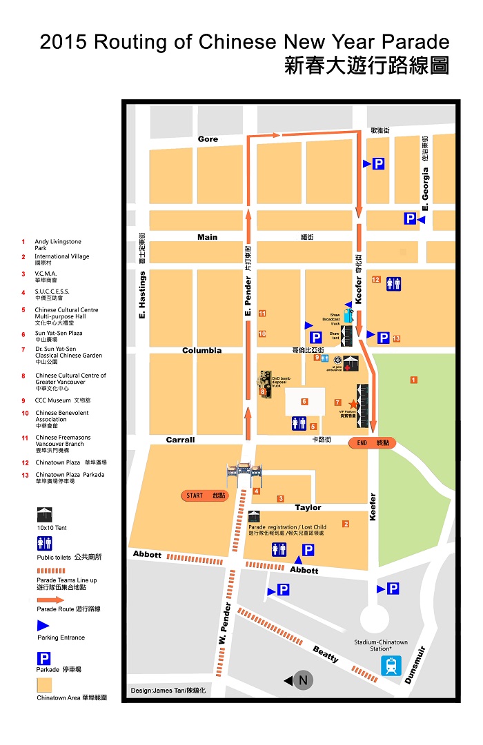 2015羊年第四十二届温哥华华埠春节春节大游行於2015年2月22日周日上午11点正在华埠千禧门起步, 大约历时两个半小时。将有数万市民和游客夹道观赏。华埠春节庆会由温哥华中华会馆,大温哥华中华文化中心,温哥华华埠商会,中侨互助会,云埠洪门机构和加拿大铁城崇义会主办,联合华人社团暨各界华人华侨共同举办。 经过四十年来的不断发展, 由起初的华埠唐人街社团商铺的华人中国农历新年的小范围的年庆, 已经扩大到多元文化丰富多彩的节日庆会, 成为大温哥华地区家喻户晓主要的中国新年庆祝活动。 去年就吸引了五万多市民和游客前来观赏。 温哥华市政府近来正式宣布将华埠春节大游行定为市府支持的非赢利组织的大型文化活动项目。 这对华埠组织的弘扬中华文化的春节庆会起到极大的鼓舞。