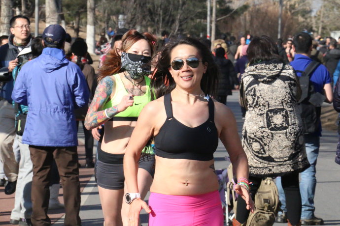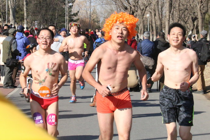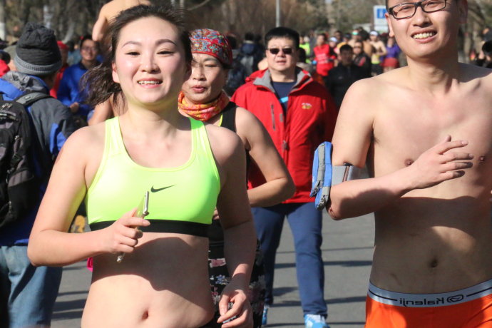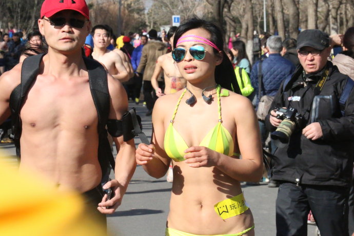实拍:比基尼美女参加2015北京奥森“光猪跑”(图)2020-09-09 |作者: | 来源:生活Loading...分享: 今天3月1日北京奥林匹克森林公园格外热闹,一年一度的“光猪跑”如期在这个周末举行,这个纯属民间组织的长跑活动,吸引了众多跑步俱乐部及跑步爱好者的参加。按照跑步要求,参加光猪跑的男生一般着内裤,女生可比基尼。博主在今天上午奥森光猪跑现场看到,美女秀身材,男生秀肌肉,甚至爷爷奶奶辈额都有参加,可谓热闹非凡。 本文发布于: 2015-3-1 19:08 阅读 未经允许不得转载:加拿大乐活网 »实拍:比基尼美女参加2015北京奥森“光猪跑”(图)分享: