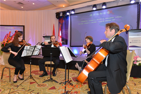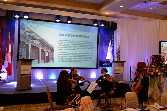 在时长约2小时的发言环节后,清华经济管理学院代表团,加中政府代表, 出席盛典的嘉宾和加西校友会校友们分别合影留念。晚上7点晚宴开始, 大会准备了丰富的抽奖礼品并安排了精彩的钢琴和提琴演奏节目助兴。
