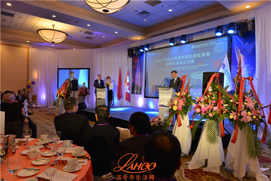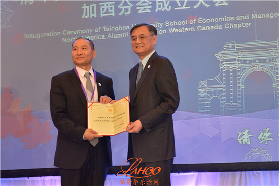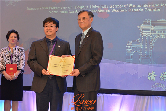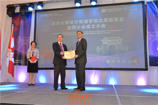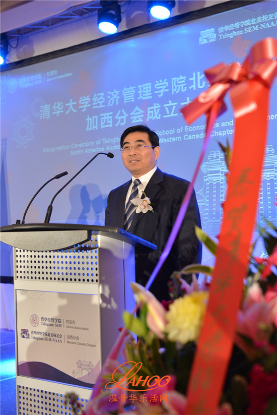清华经济管理学院钱颖一院长,宣布北美校友会加西校友分会在温哥华正式成立,并并在各位嘉宾的见证下主持了揭牌仪式。