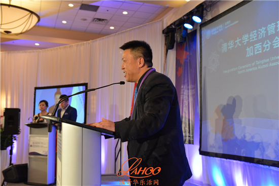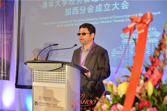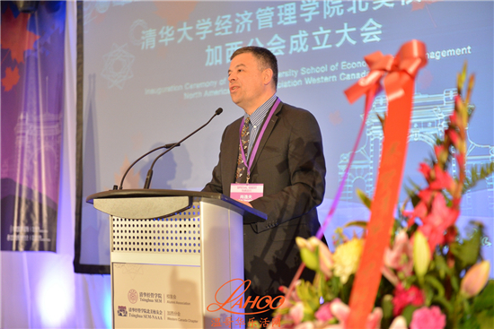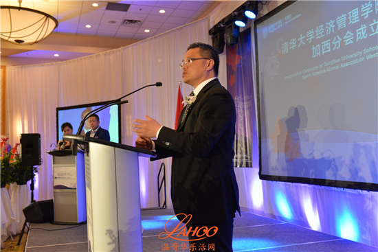 随后发言的温哥华总领馆教育组参赞于长学先生则代表总领馆向清华经管学院加西分会的成立表示衷心祝贺,并且期待着分会欣欣向荣的发展,永葆生机和活力。