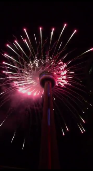 CN塔附近的国庆节烟花吸引了不少眼球。