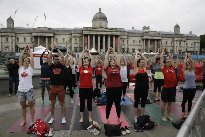 市政厅前的户外瑜伽活动。
