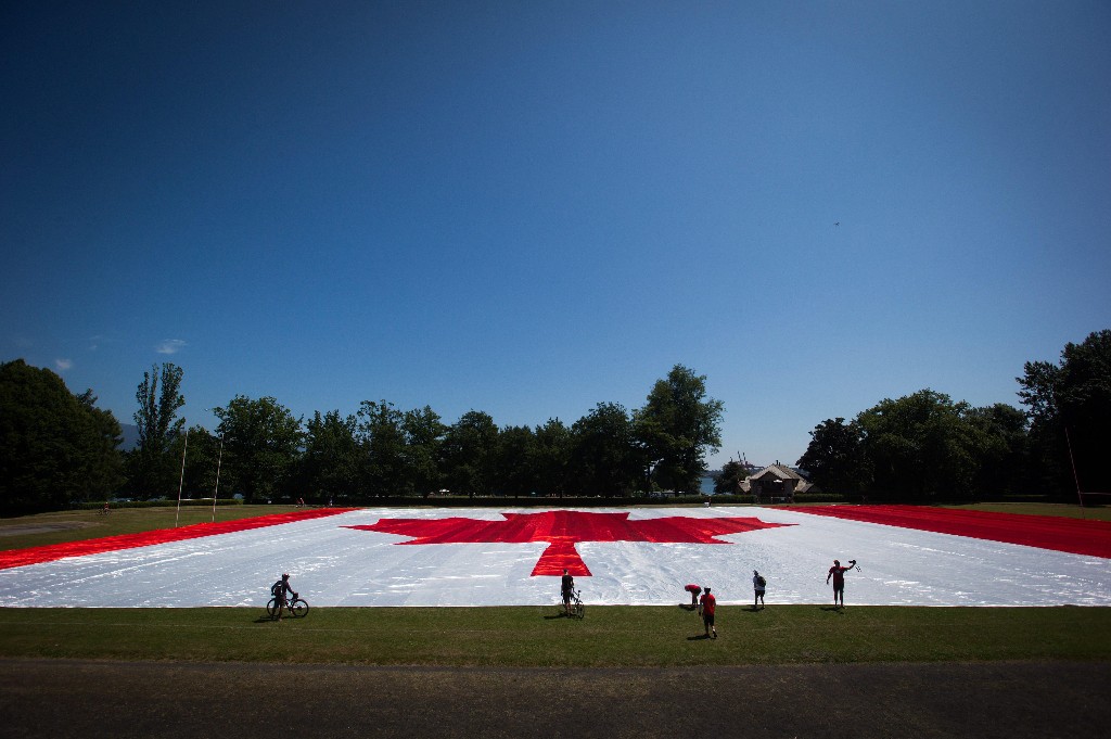 Stanley Park的巨型国旗,长140米,宽70米。